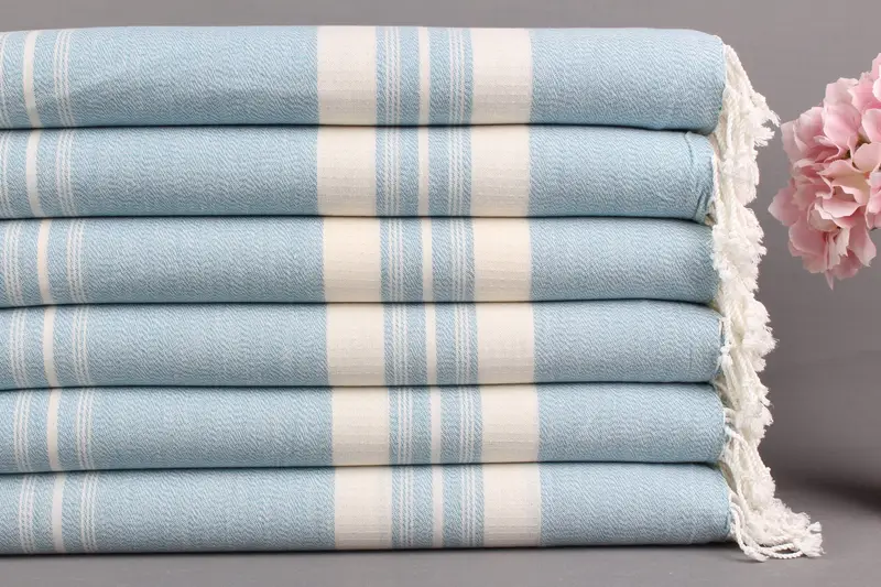 Organik Plaj Havlusu Organik Pamuk Turkuaz Çizgili, 38x60 İnç