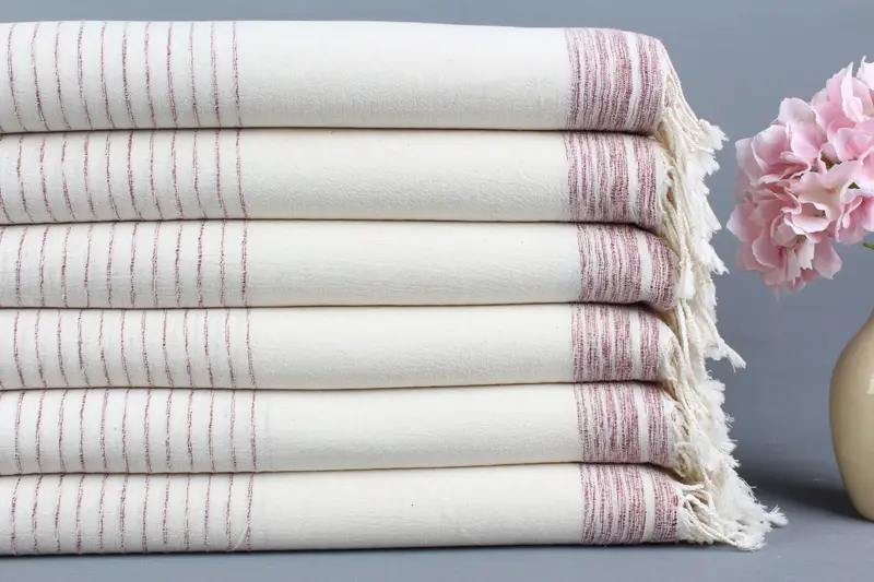 Organik Türk Plaj Havlusu Bordo-Mercan Çizgili, 36x67 İnç