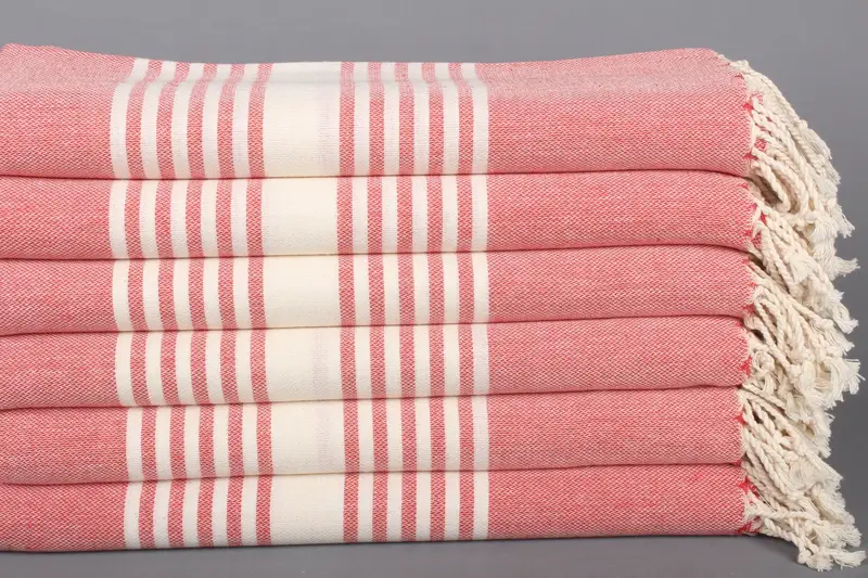 Nedime Hediyesi Monogramlı Türk Plaj Havlusu Kırmızı Çizgili, 40x67 İnç
