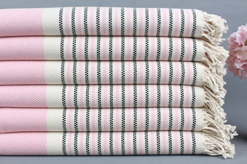 Toptan Organik Plaj Havlusu, Pudra Pembe-Siyah, 40x71 İnç