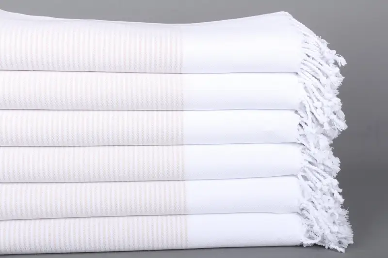 Özel Hediyelik Türk Pamuk Bej Çizgili Plaj Havlusu, 36x71 İnç