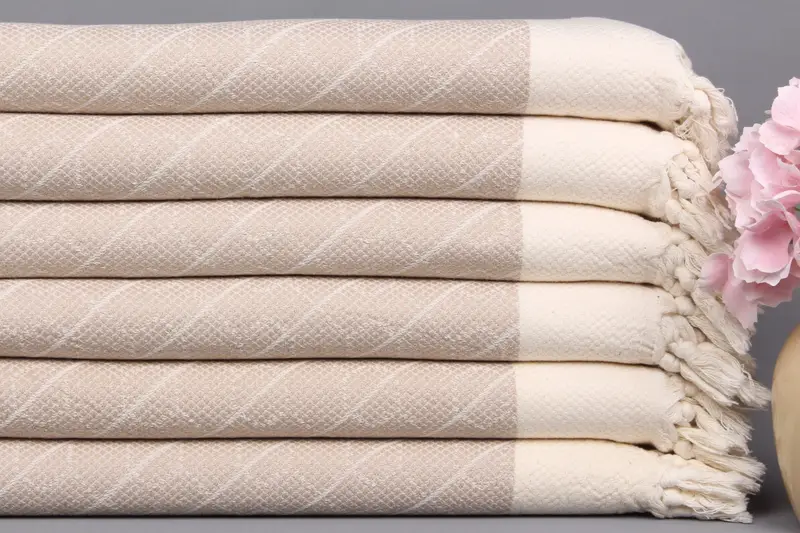 Kamp Çay Havlusu Organik Pamuk Açık Bej Geometrik, 18x36 İnç