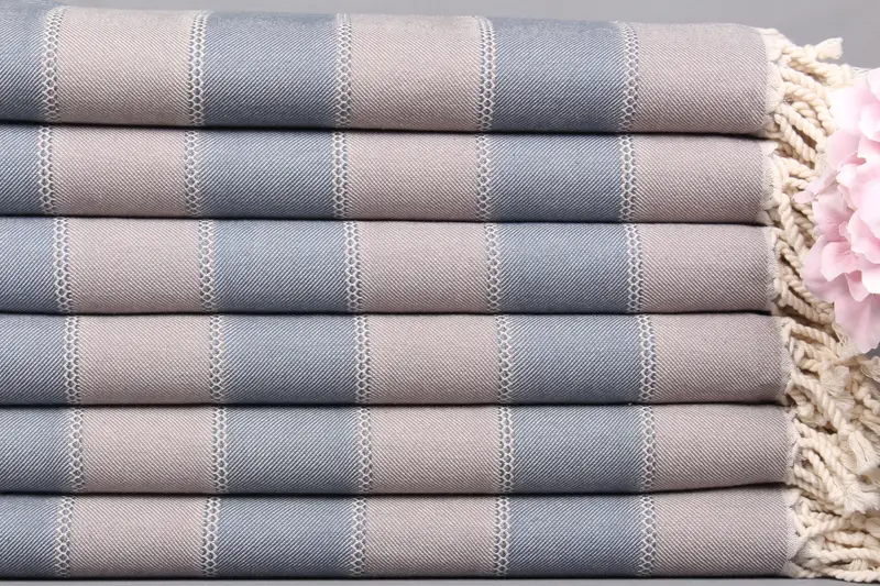 Kişiye Özel Türk Plaj Havlusu Kahverengi Petrol Çizgili, Organik Pamuk, 36x65 İnç