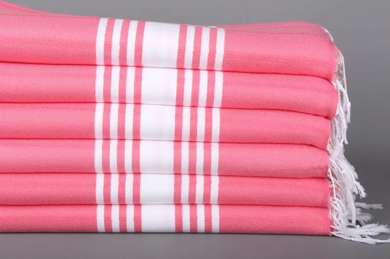 Çizgili Havlu Monogramlı Türk Organik Pamuk Vermilyon, 40x71 İnç