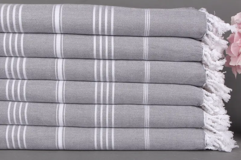 Plaj Havlusu Monogramlı Türk Organik Pamuk Koyu Gri Çizgili, 40x71 İnç