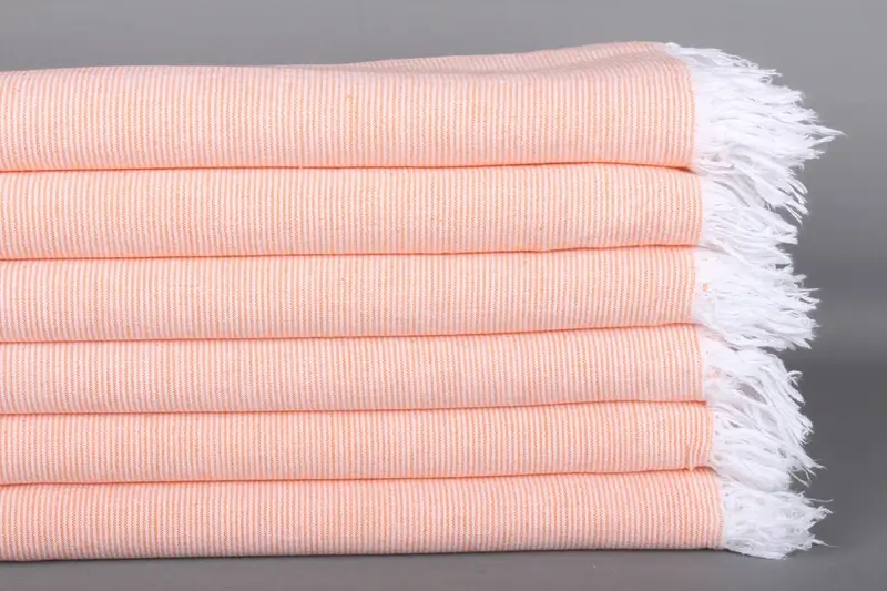 El Yapımı Turuncu Çizgili Pamuk Plaj Havlusu, 40x71 İnç