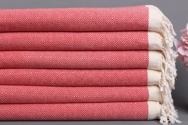 Organik Plaj Havlusu Türk Pamuğu Kırmızı Bej, 38x71 İnç