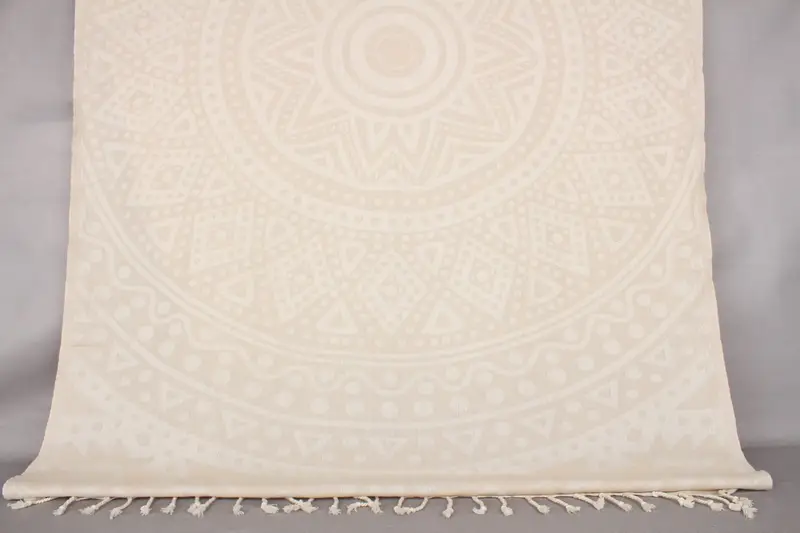 Bej Yuvarlak Desenli Türk Pamuğu Havlu, Kişiye Özel Hediye, 40x71 İnç