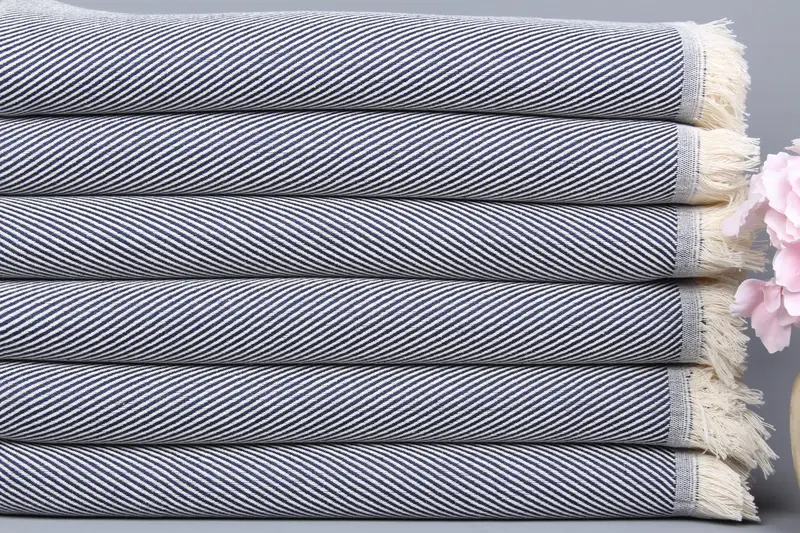 Türk Plaj Havlusu Kişiye Özel Lacivert Çizgili, 36x71 İnç