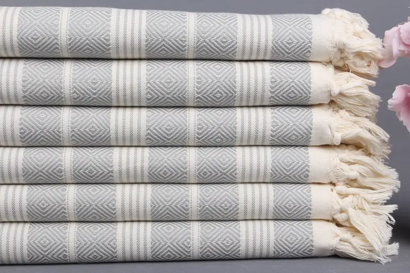 Özel Plaj Havlusu Türk Pamuğu Açık Gri Elmas, 38x69 İnç
