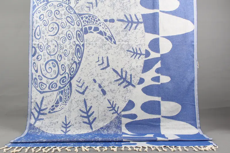 Kişiye Özel Türk Banyo Havlusu Saks Mavi Hayvan Baskı, 40x71 İnç