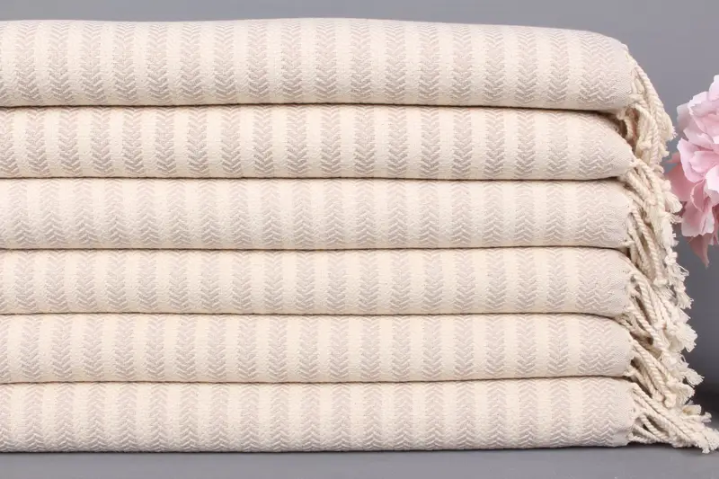 Özel El Havlusu İşlemeli Bej Şerit, Organik Pamuk, 18x40 İnç