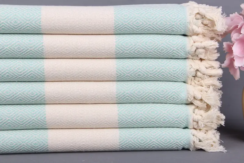 Kişiye Özel Türk Plaj Havlusu Dark Mint Diamond, Organik Pamuk, 40x71 İnç