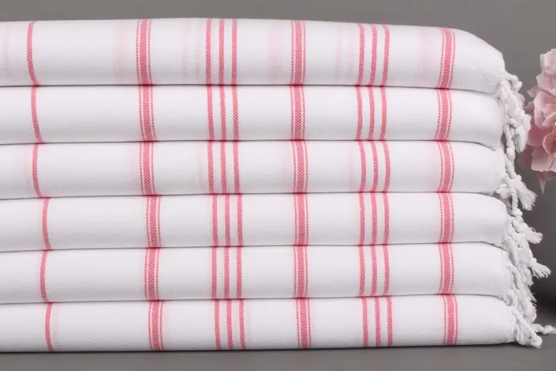 Pembe Çizgili Organik Pamuk Dokuma Havlu, 24x36 İnç