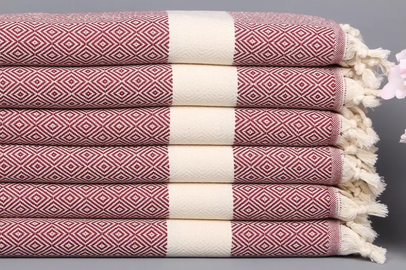 Türk El Havlusu Monogram Organik Pamuk Bordo, 20x36 İnç
