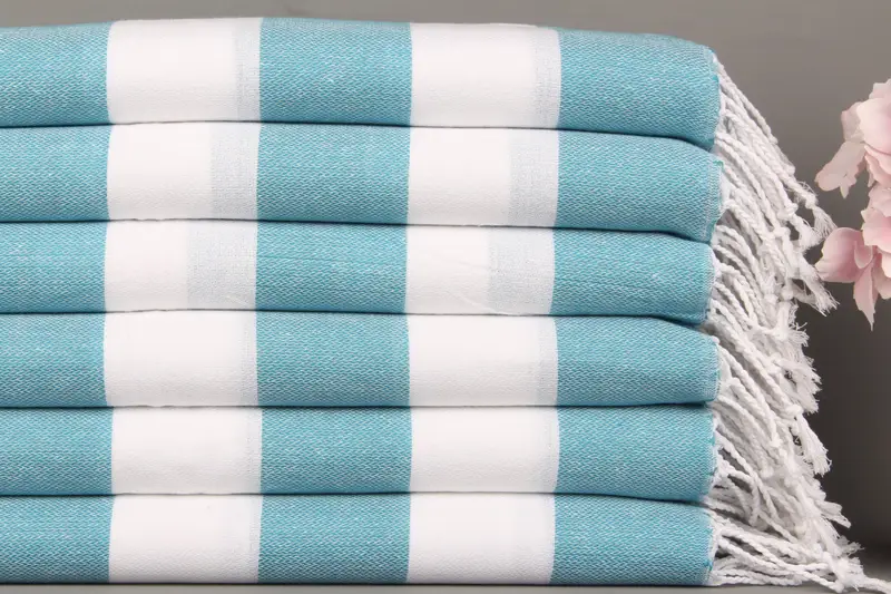 Kişiye Özel El Havlusu, Organik Pamuk, Petrol-Beyaz Çizgili, 18x40 İnç