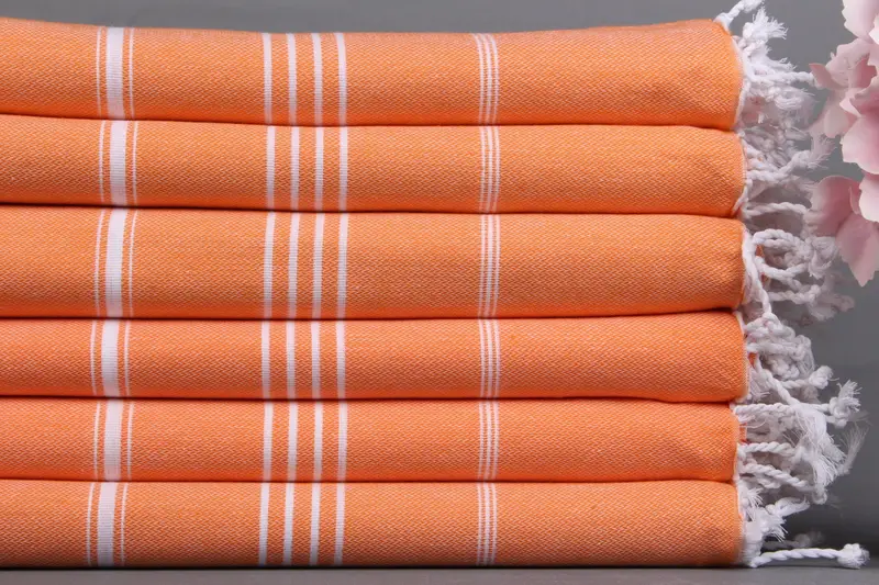 İşlemeli Plaj Havlusu Kişiye Özel Türk Pamuğu, Koyu Turuncu Çizgili, 40x71 İnç