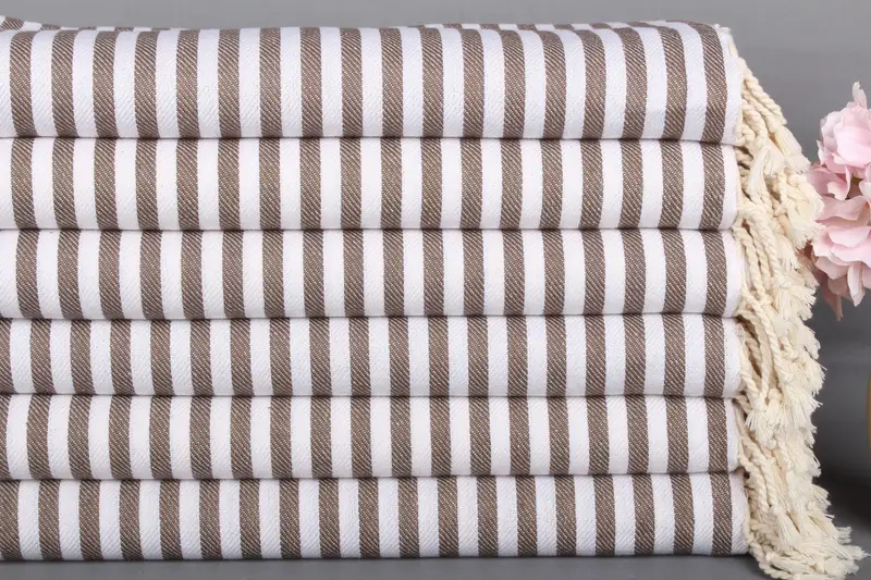 Kahverengi Pamuk Havlu Türk Plaj Havlusu, 40x71 İnç
