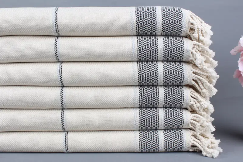 Türk Plaj Havlusu Organik Pamuk Siyah-Açık Gri, 36x71 İnç