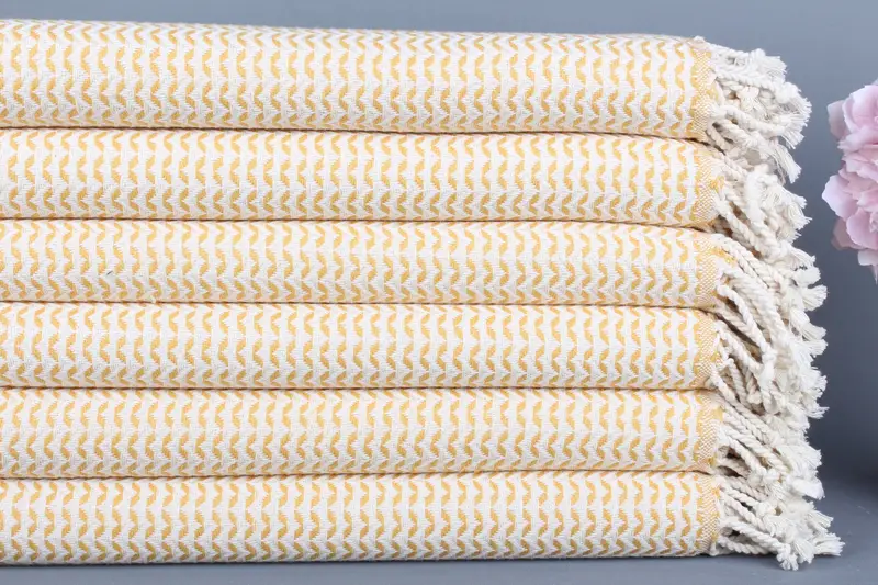 Organik Pamuk Havlu Hardal Şerit 40x71 İnç Küçük Battaniye