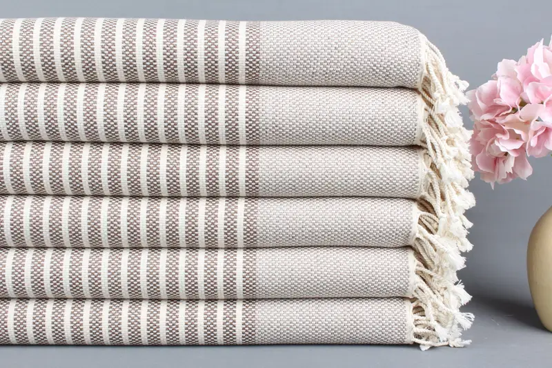 Türk Plaj Havlusu Organik Pamuk Kahverengi Çizgili, 40x75 İnç