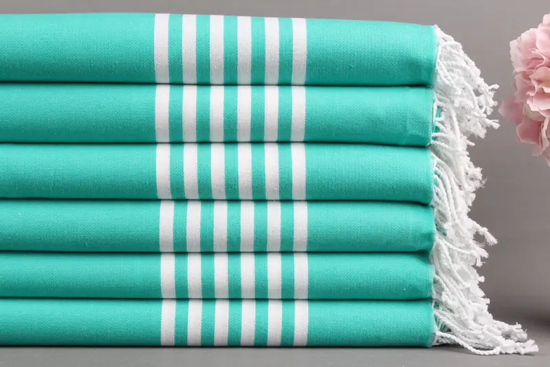 Türk Plaj Havlusu Benetton Yeşil Çizgili Peştemal, 40x71 İnç