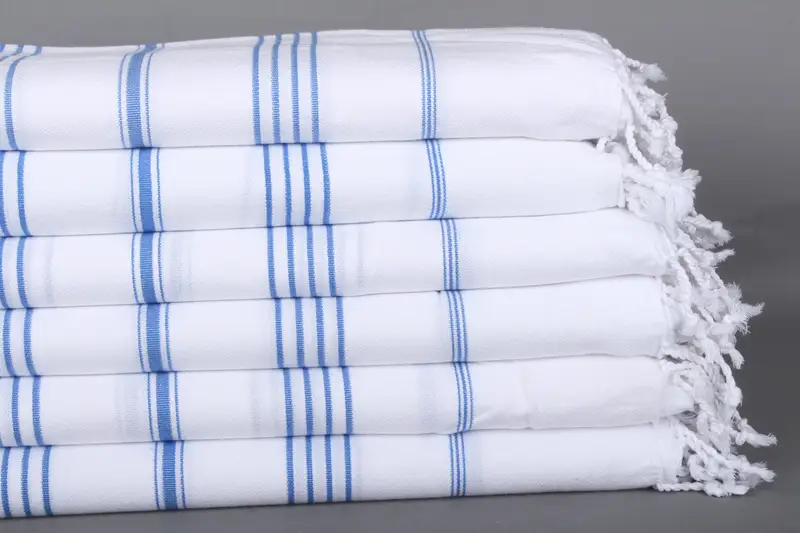 Özel Plaj Havlusu Türk Pamuk Saks Mavi Çizgili, 40x71 İnç