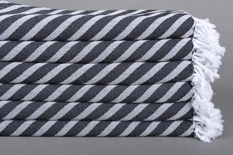 Siyah Pamuklu Havlu Çizgili 40x71 İnç, Plaj Havlusu, Spa Havlusu