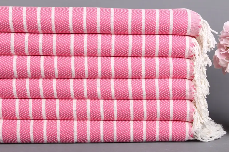 Türk Plaj Havlusu Organik Pamuk Pembe Balıksırtı, 40x71 İnç