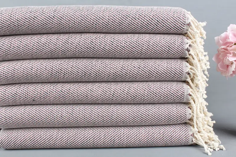 Türk Plaj Havlusu Organik Pamuk Pembe ve Bej, 40x67 İnç