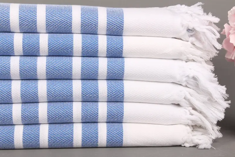 Kişiye Özel Açık Mavi Chevron Peştemal Havlu, 40x71 İnç