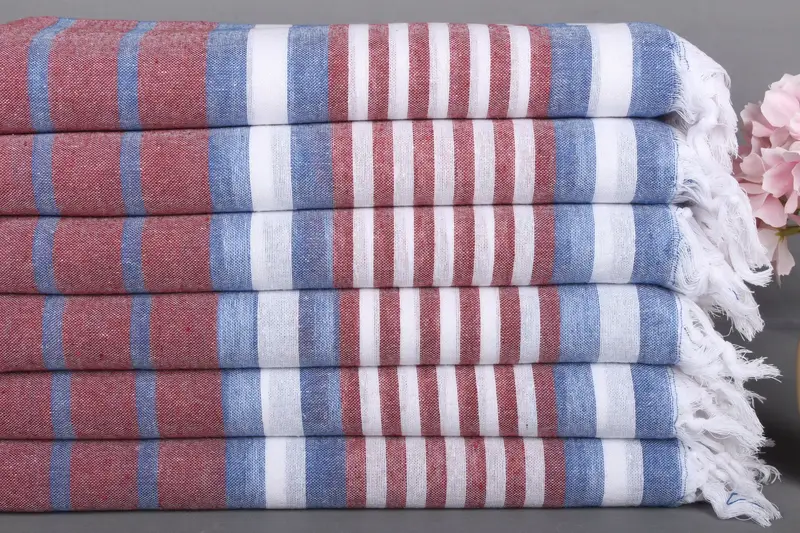 Nedime Monogramı Türk Plaj Havlusu Pamuk Bordo-Mavi, 40x67 İnç