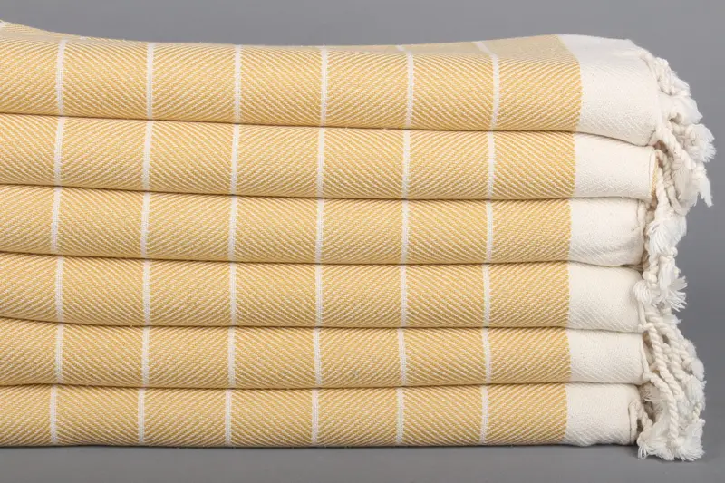 Kişiye Özel Monogram Balıksırtı Plaj Havlusu, Pamuk, Hardal, 40x71 İnç