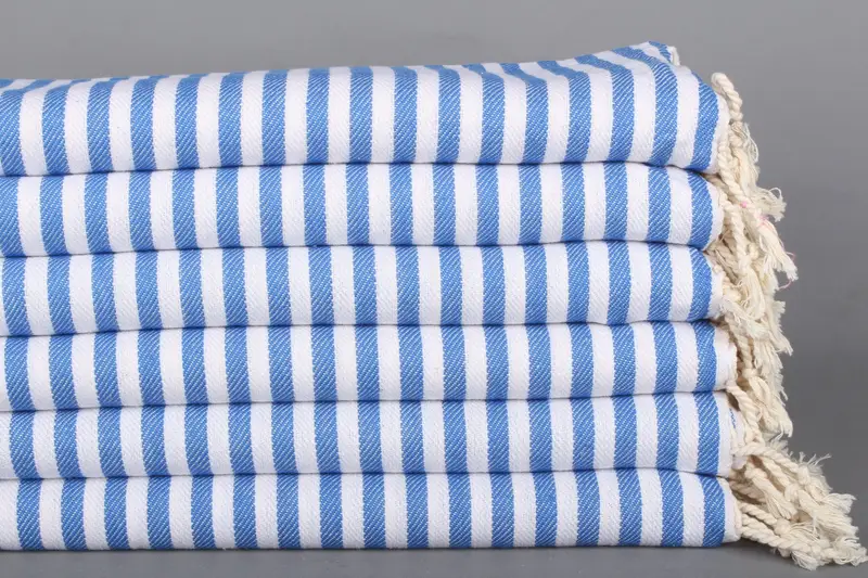 Çizgili El Havlusu Organik Pamuk Saks Mavi, 18x40 İnç