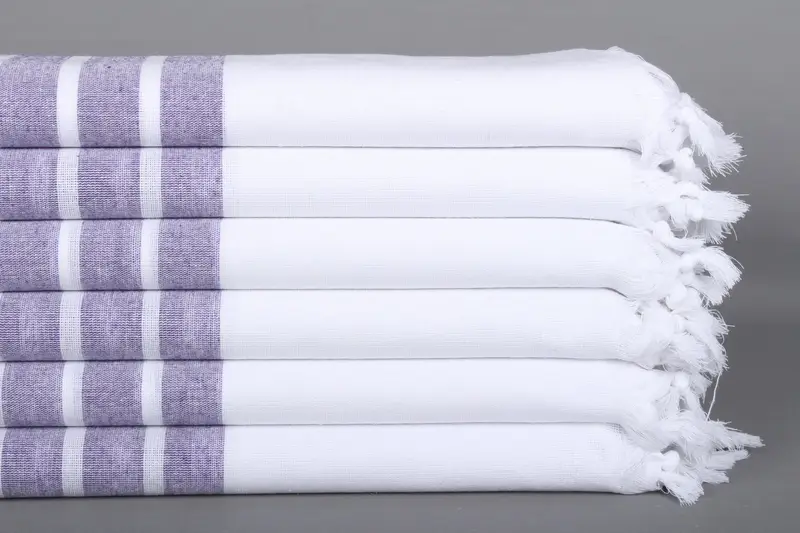 Çizgili Havlu Mor Organik Pamuk Plaj Havlusu, 40x71 İnç