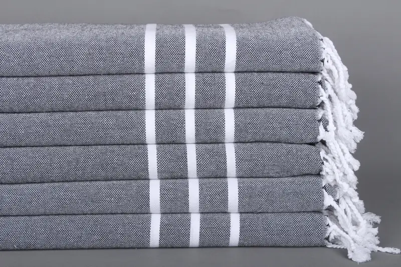 Türk El Havlusu Monogram Pamuk Siyah Çizgili, 18x40 İnç