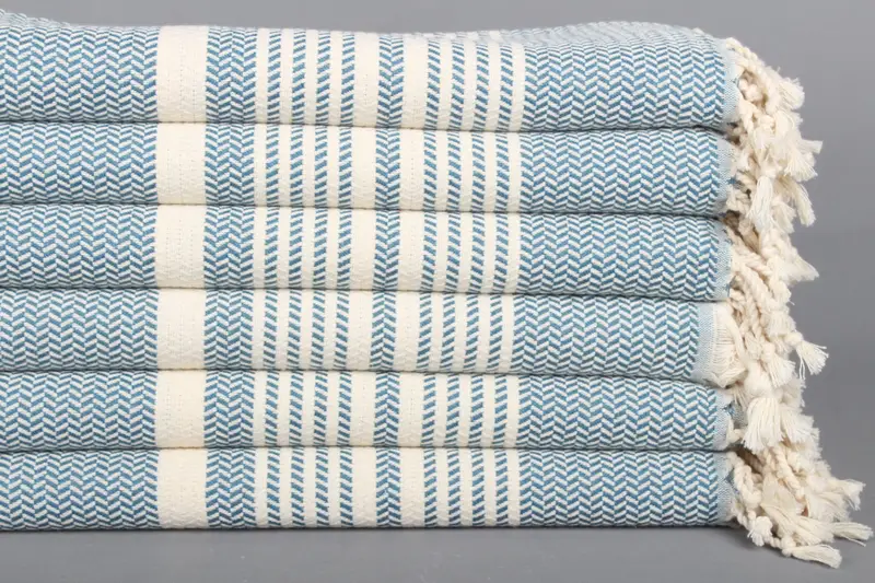 Petrol Mavi Çizgili Türk Pamuk Havlusu, Kişiye Özel, 40x71 İnç