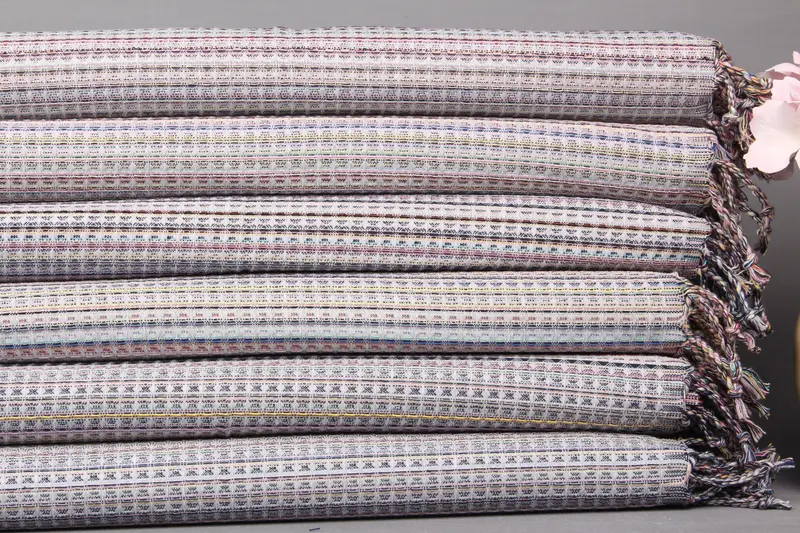 Banyo El Havlusu İşlemeli Açık Gri Çizgili, 18x38 İnç