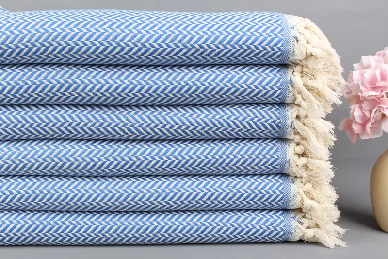 Türk Plaj Havlusu Petrol Mavisi Chevron, Organik Pamuk, 40x71 İnç