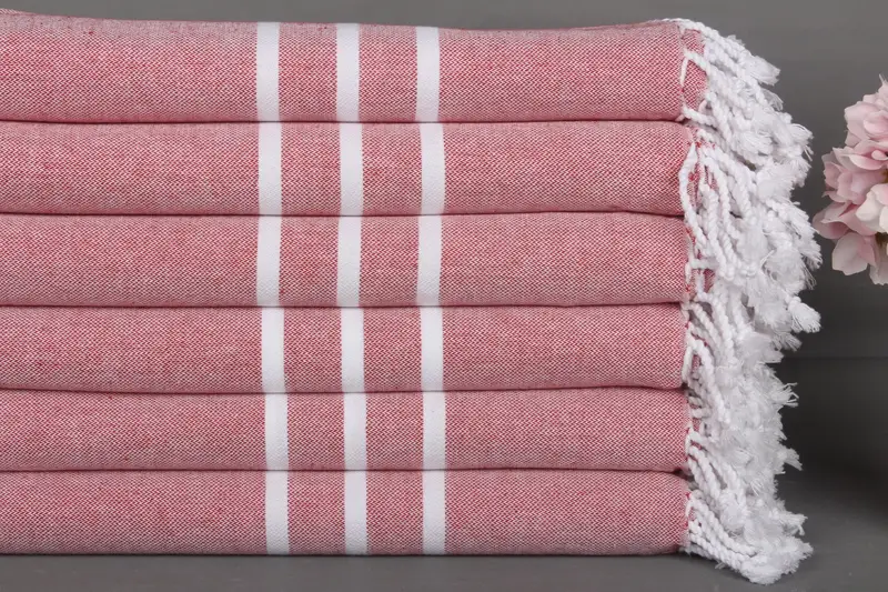 Kişiye Özel Türk Plaj Havlusu Kırmızı Organik Pamuk, 40x71 İnç