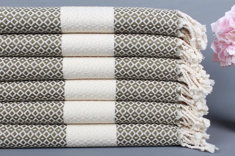 Düğün Hediyesi Organik Pamuk Türk Havlusu Açık Haki Yeşil, 40x71 İnç