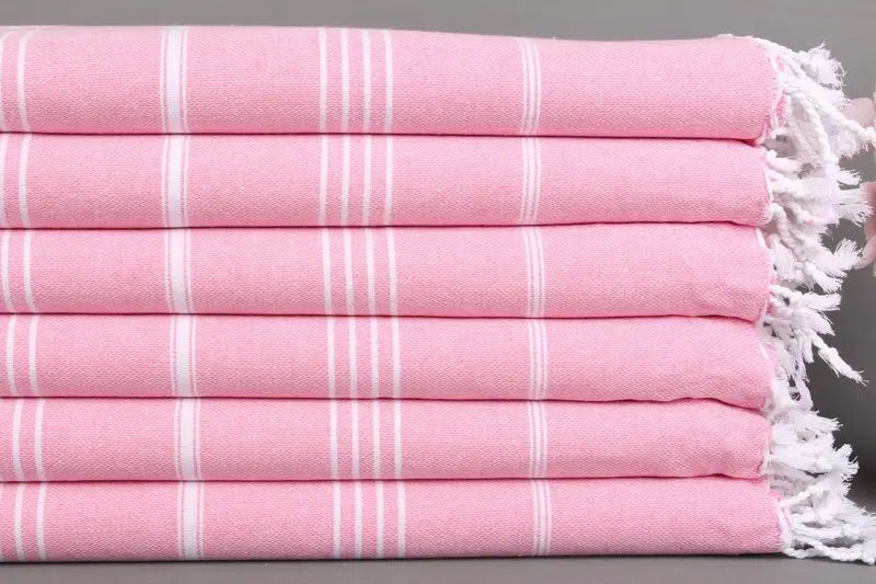 Organik Plaj Havlusu Organik Pamuk Pembe Çizgili, 40x71 İnç