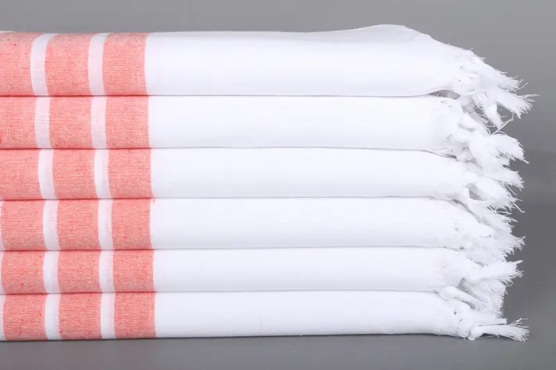 Kişiye Özel Plaj Havlusu Türk Pamuğu Turuncu Çizgili, 40x71 İnç