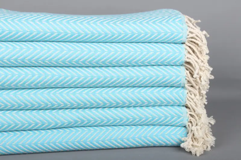 Türk Plaj Havlusu Turkuaz Pamuk Zig Zag, 40x71 İnç