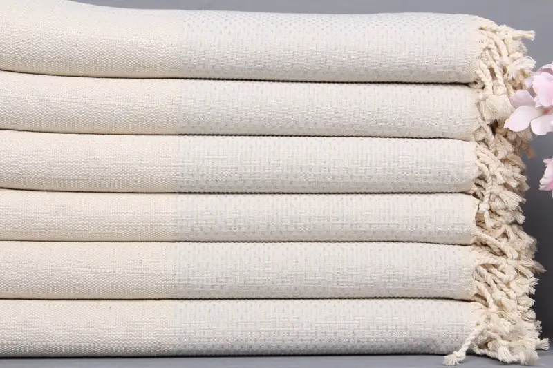 Türk Havlusu Monogramlı Plaj Havlusu Açık Gri Keten, 40x71 İnç