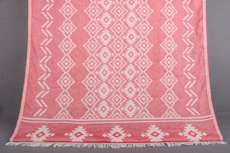 Kırmızı Pamuklu Türk Banyo Havlusu Geometrik, Kişiye Özel, 40x73 İnç