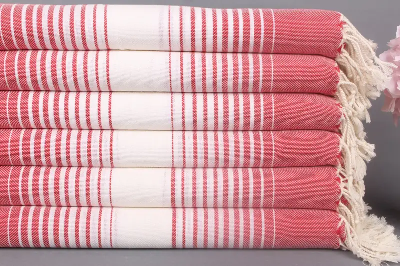 Kişiye Özel Türk Plaj Havlusu Kırmızı Çizgili, 40x67 İnç