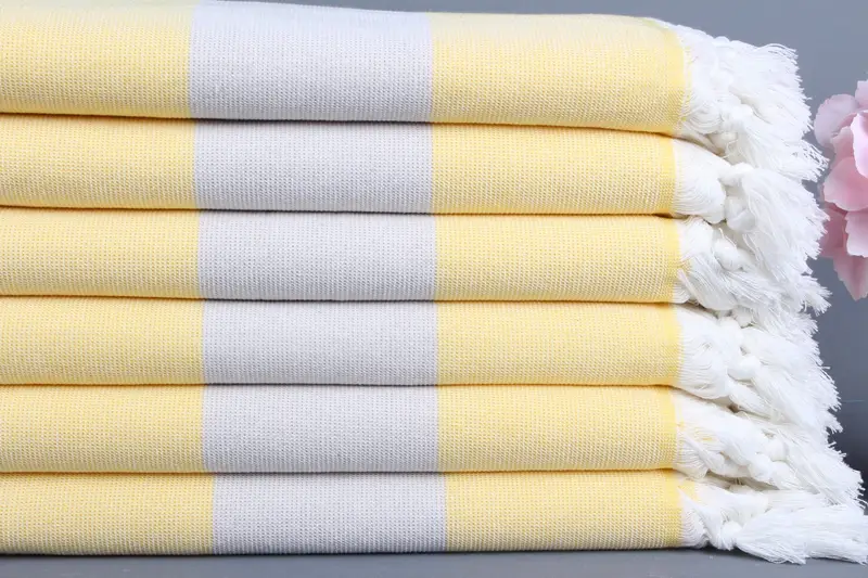 Plaj Havlusu Sarı-Bej Çizgili Havlu Türk Organik Pamuk, 36x71 İnç