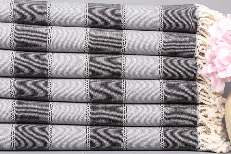 Kişiye Özel Türk Plaj Havlusu Koyu Gri-Siyah Çizgili, 36x65 İnç