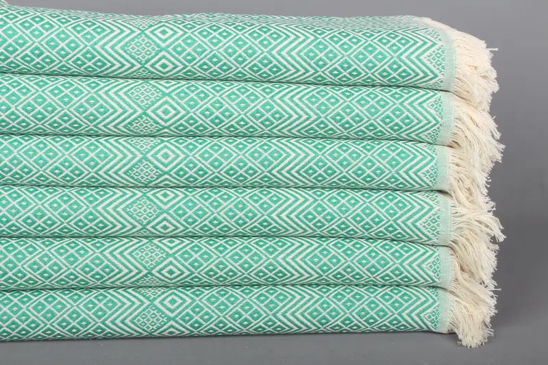 Nakışlı Türk Plaj Havlusu Organik Pamuk Yeşil, 40x71 İnç